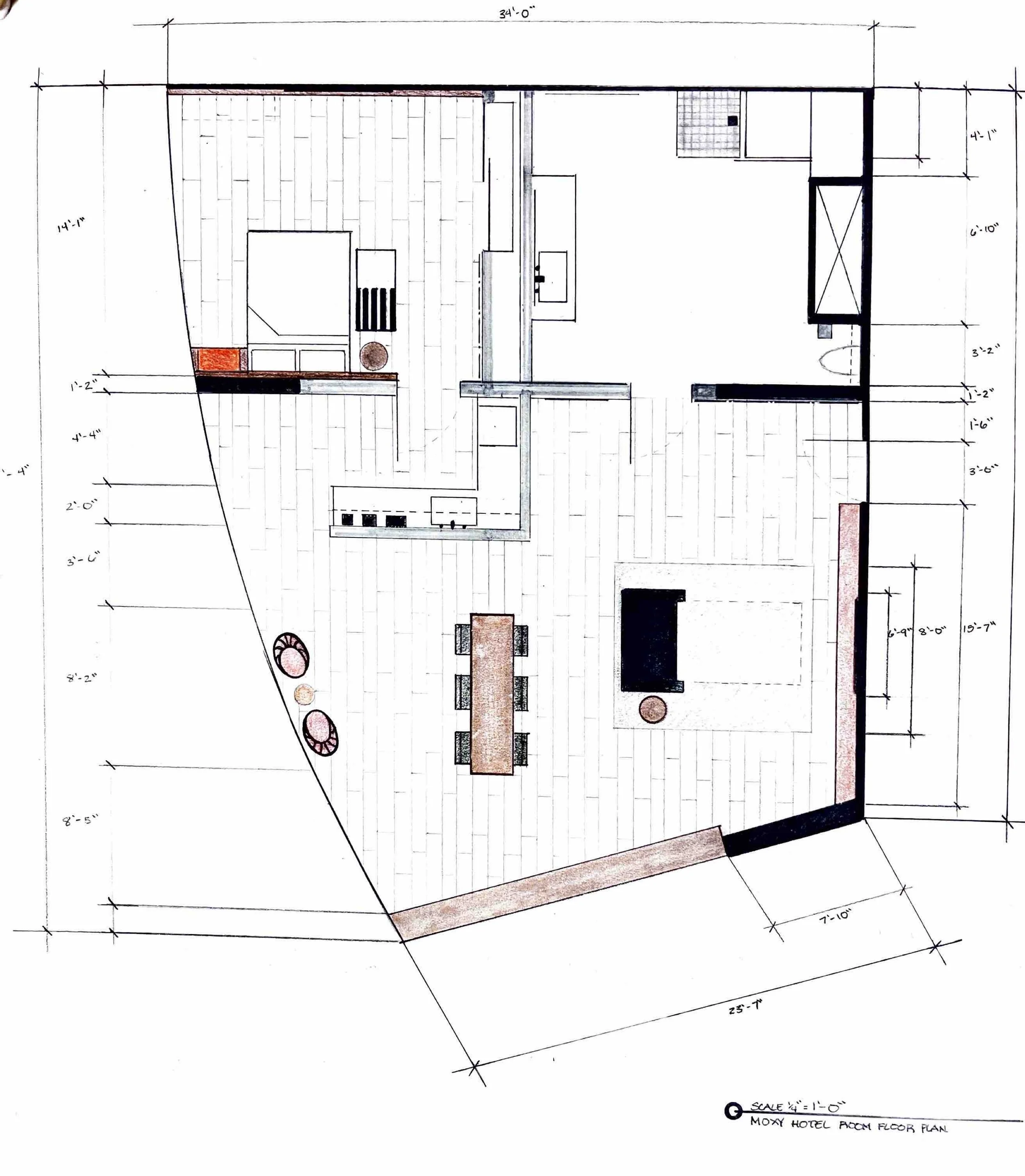 Moxy Hotel Belgium Design Project Bedroom Two Point Perspective