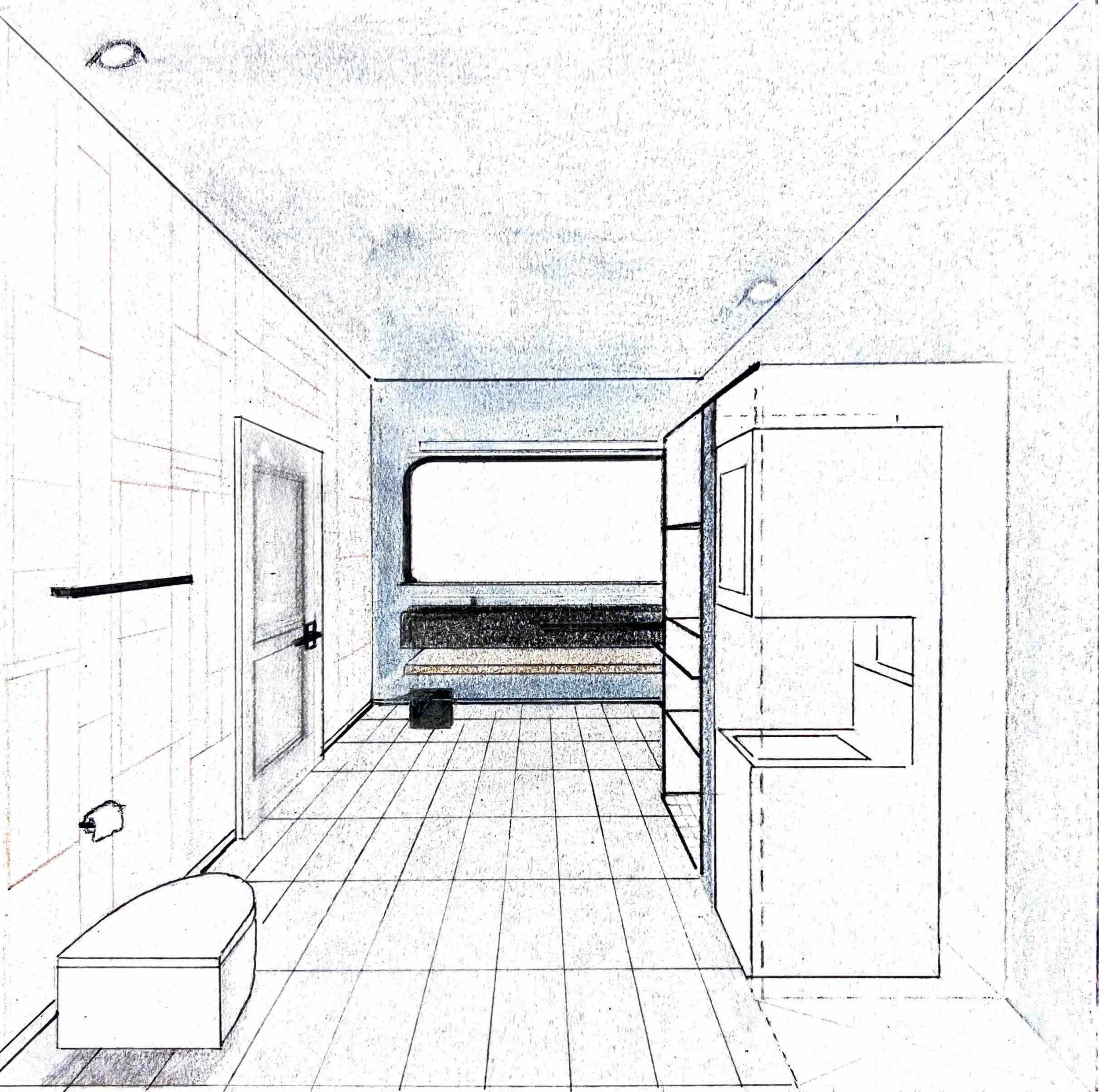 Moxy Hotel Belgium Design Project Bathroom One Point Perspective